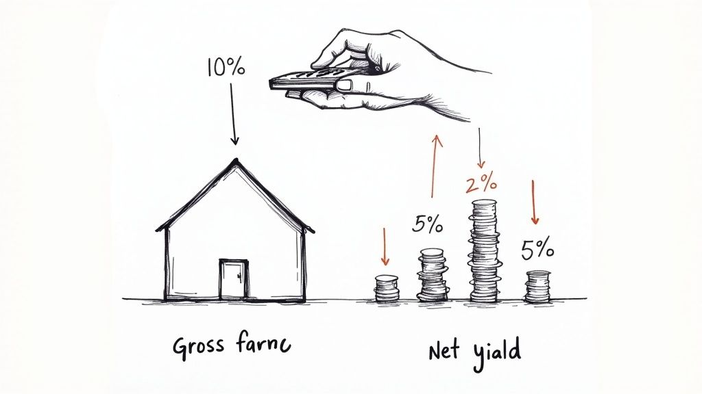 Gross yield is a great starting point—a quick-and-dirty number to see if a property is even in the ballpark. But it's only half the story. If you want to understand what a property really earns you, you need to calculate the net rental yield. This is the number that shows your true cash flow after you’ve paid all the bills.